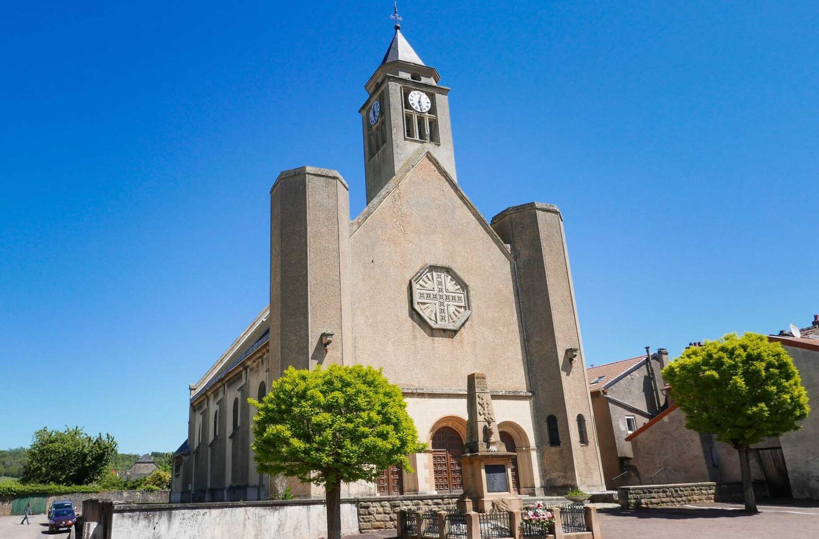Kirche Saint-Laurent wieder aufgebaut nach dem Krieg, da die alte Kirche durch den Beschuss während des Krieges 1993-1945 zerstört wurde.